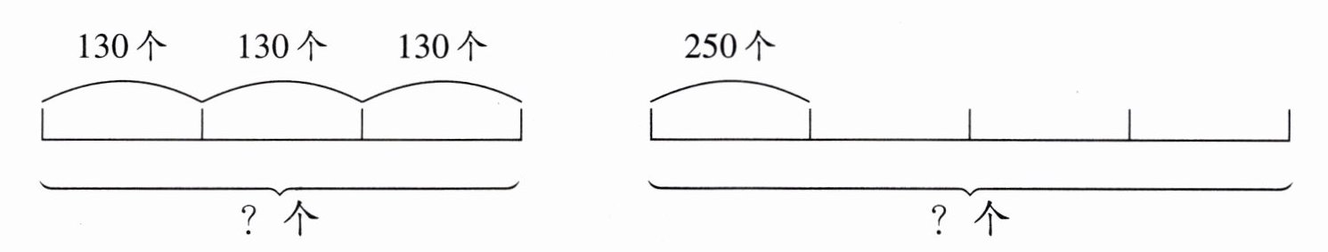 2. $250×4 = 1000$(个)(这里虽然第二条线后面没有图形,但从线段被平均分成4段,每段对应250个来计算)