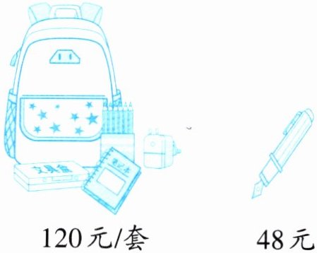 4. 妈妈给2个女儿各买一套学习用品,给自己买了一支钢笔,一共用了多少元?