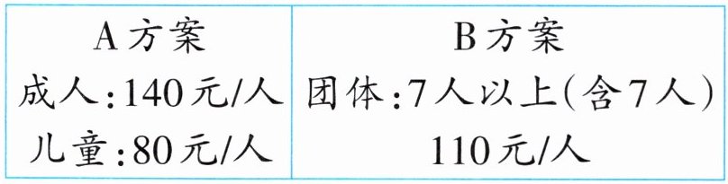 7人购买团体票,1名儿童购买儿童票,参加“××城两日游”一共需要多少元?