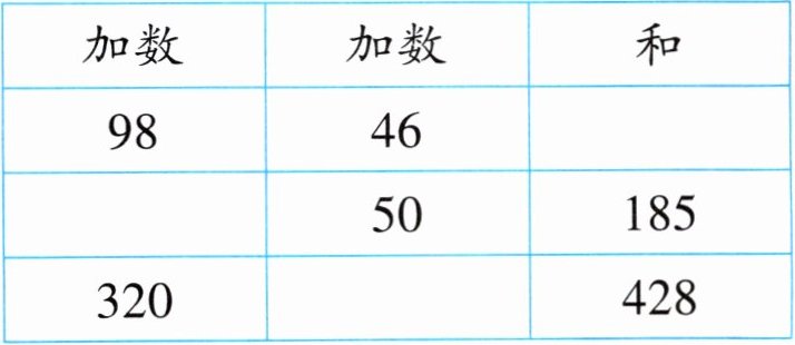 1. 根据下面的加法算式写出另外1个加法算式和2个减法算式。