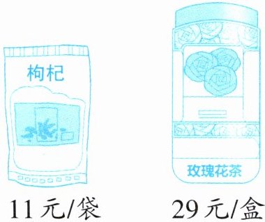 1. 张老师在一场助农直播中抢购了7袋枸杞和6盒玫瑰花茶。张老师一共需要支付多少元?