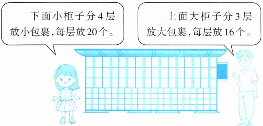 1. 小柜子包裹数:4×20=80(个)