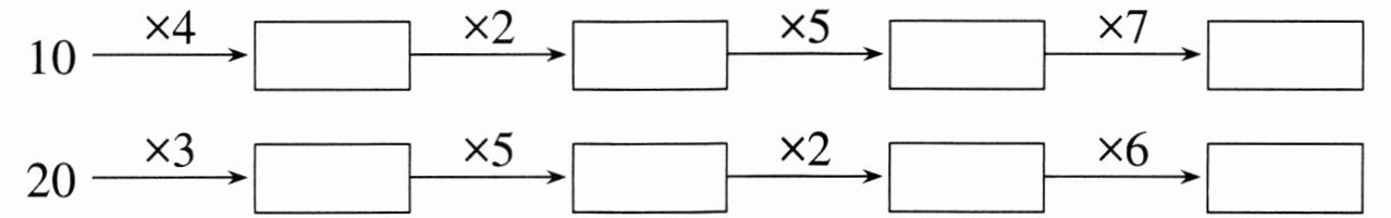 $10\xrightarrow{×4}□\xrightarrow{×2}□\xrightarrow{×5}□\xrightarrow{×7}□$