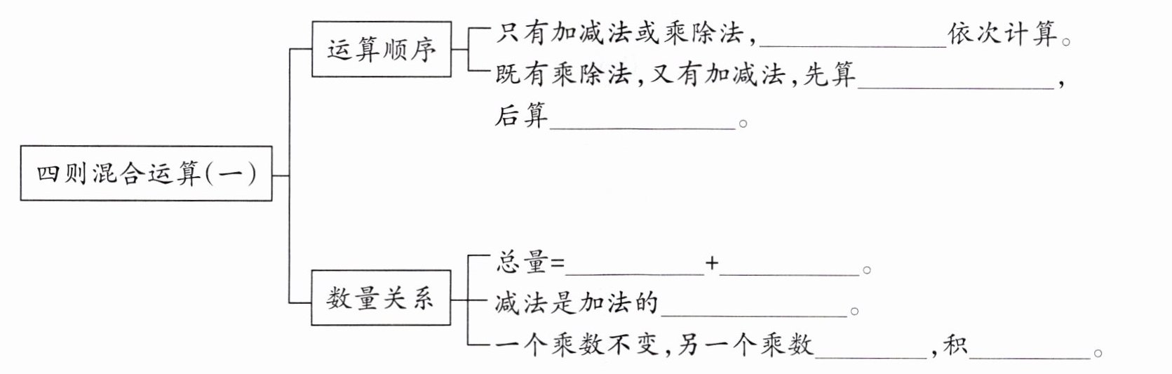 B --> E[既有乘除法,又有加减法,先算______,后算______。]