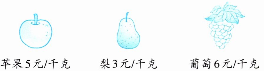 5. 李阿姨买了两种水果,正好用了63元。你认为她可能买的是下图中的哪两种水果?各多少千克?