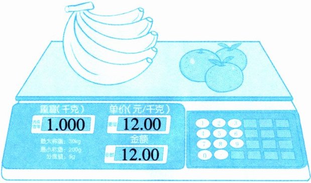 由图可知,香蕉和橘子总重1.000千克,因为1千克 = 1000克,所以小华买的水果重量是1000克,刚好是2斤,他买对了。