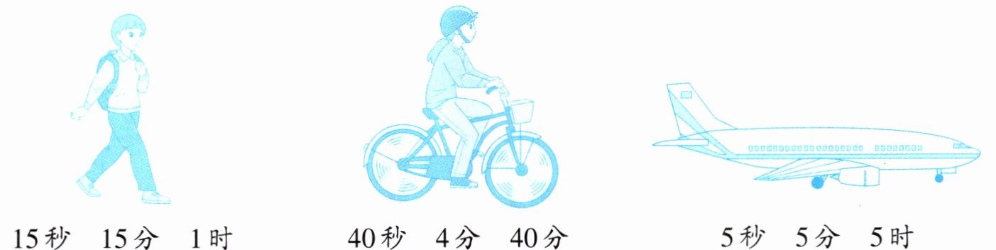5. 用下面的出行方式行1 km大约需要多长时间?圈出合适的答案。