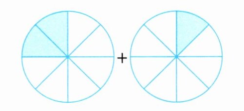 $\frac{( 5 )}{( 8 )} + \frac{( 3 )}{( 8 )} = \frac{( 8 )}{( 8 )}$