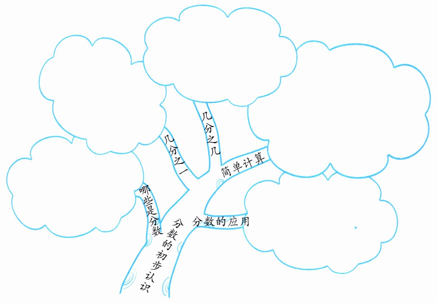 在左侧树叶中可以写或画以下内容来表示“分数的初步认识”: