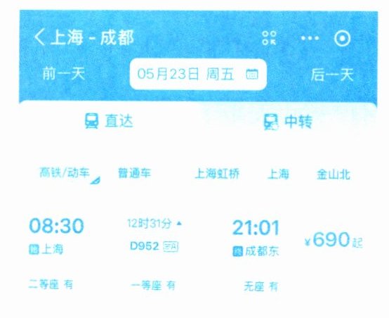 5. 这趟高铁从上海到达成都东站的时间是晚上,对吗?