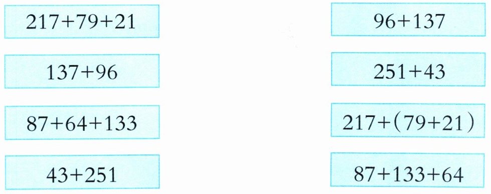| $87 + 64 + 133$ | $217 + (79 + 21)$ |