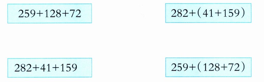 | $282 + 41 + 159$ | $259 + (128 + 72)$ |