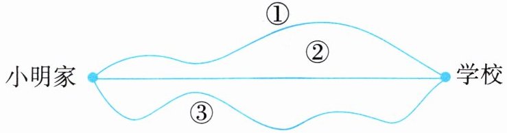 两点之间线段最短。图中路线②是连接小明家和学校的线段,所以走路线②最近。