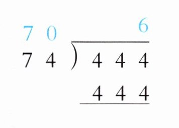 4. 对于$\begin{array}{r}6\\ 74\overline{)444}\\ \underline{444}\\ 0\end{array}$,准确商是$6$。