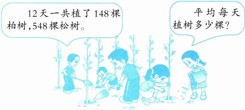 12天一共植了148棵柏树,548棵松树。平均每天植树多少棵?