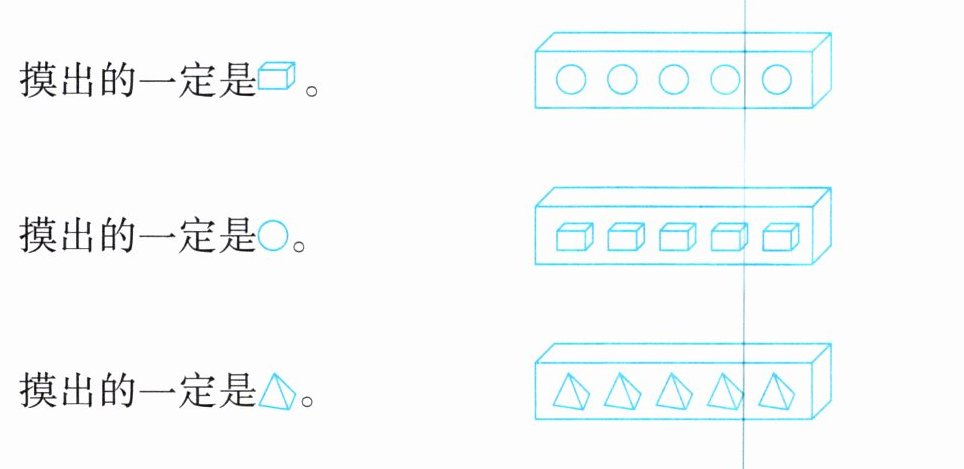 “摸出的一定是$□$”与“$□□□□□$”相连;“摸出的一定是$◯$”与“$◯◯◯◯◯$”相连;“摸出的一定是$\triangle$”与“$\triangle\triangle\triangle\triangle\triangle$”相连。
