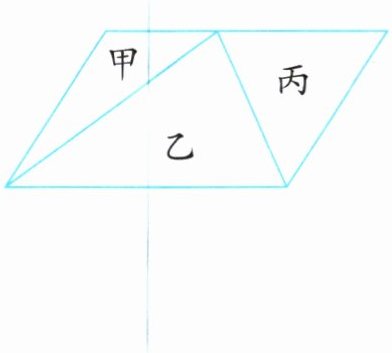 观察图形,甲与丙的面积之和等于平行四边形面积的一半(甲、丙为平行四边形中某三角形被分割的两部分,该三角形面积为平行四边形面积的一半)。