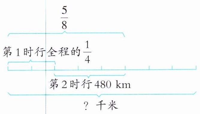 2. $480÷(\frac{5}{8}-\frac{1}{4})=480÷\frac{3}{8}=1280(km)$