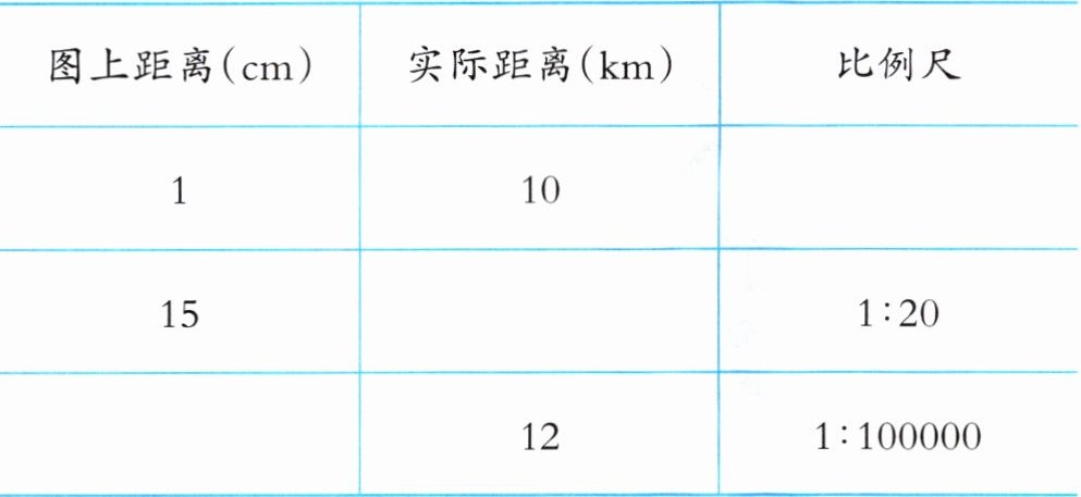 3. 在比例尺是 $$ 1 : 4 0 0 0 0 $$ 的地图上量得甲、乙两地的图上距离是 5 cm,甲、乙两地的实际距离是多少?