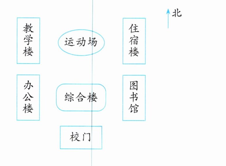 3. 看下图,说一说,张老师从住宿楼到办公楼怎样走?有几种走法?