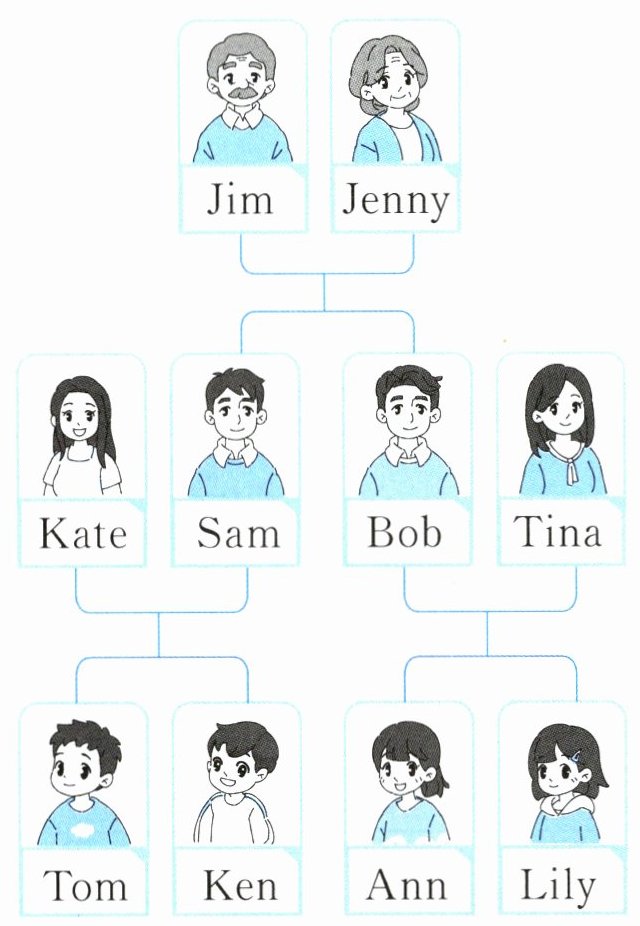 八、根据家庭树,选择单词补全Lily的家庭介绍,将序号写在横线上。(10分)