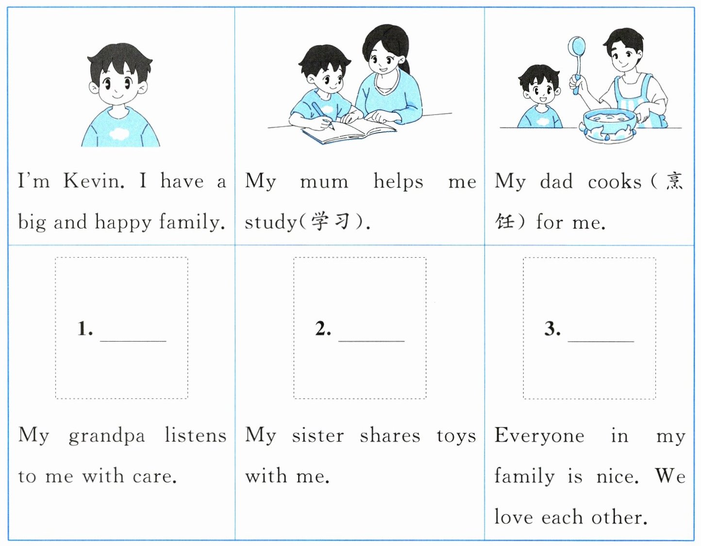 )1. Kevin has a small family.(