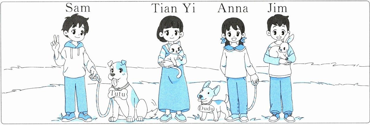 八、同学们带着各自的宠物在一起拍了张大合影。读图,判断下列句子正(T)误(F)。(10分)