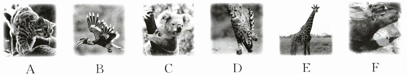 七、Linda很喜欢动物摄影,她在动物摄影展上看到了许多照片。读句子,将句子与对应图片匹配。(12分)