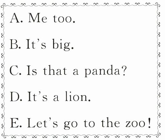 八、Linda和Tim一起去参观动物园。选择合适的句子补全对话,将序号写在对应横线上。(10分)