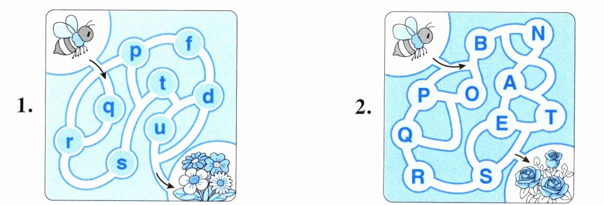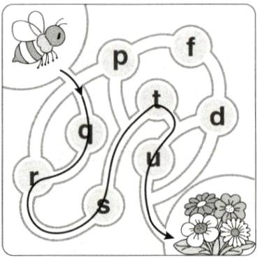 五、按照正确的字母顺序画出路线,帮小蜜蜂走出迷宫,采集花蜜。(10分)