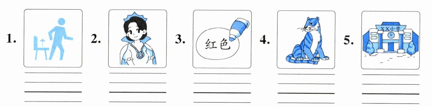 五、写出图片对应单词的首字母,将其大小写形式书写在四线三格中。(5分)