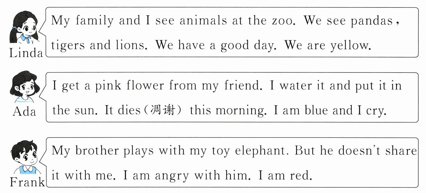 )3. Frank and his brother play the toy elephant together.任务二:根据文本内容,为下列情绪涂上对应的颜色。(6分)