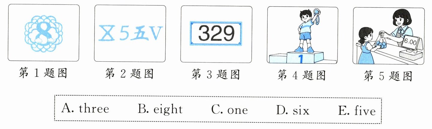 五、根据图片,填写正确的字母补全单词。(5 分)