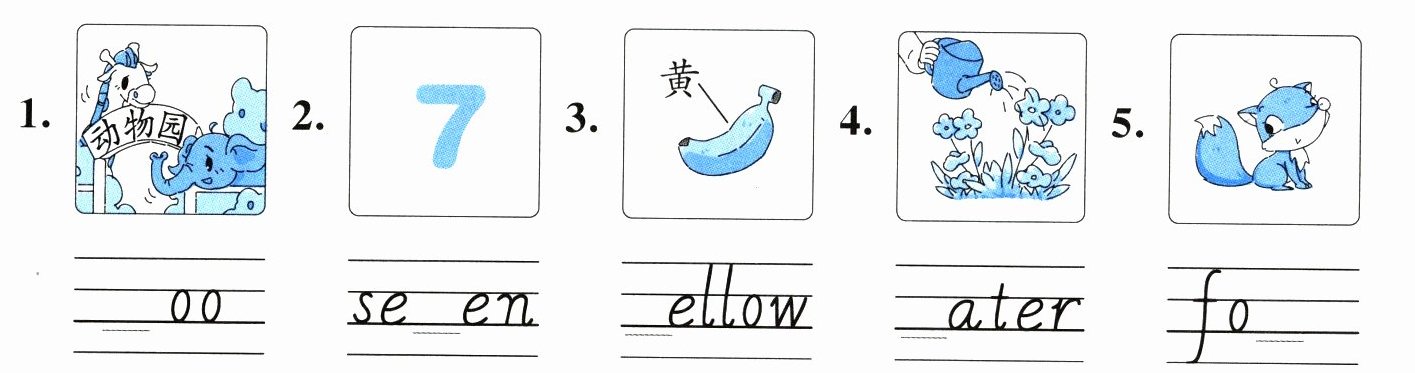 1. zoo 2. seven 3. yellow 4. water 5. fox