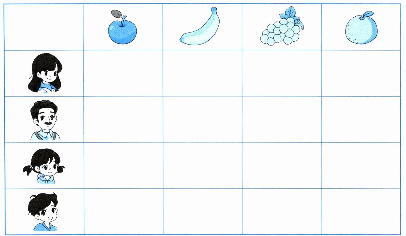 九、听录音,找到每个人喜欢的水果,在表格的相应位置打“√”。(10 分)