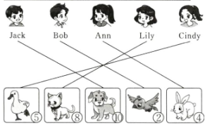 十、听录音,将人物与对应宠物连线,并在圆圈内用数字写出宠物的年龄。(10 分)