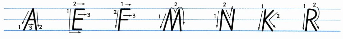 四、将下列标识中的大写字母改为小写形式,将其规范书写在四线三格中。(5分)