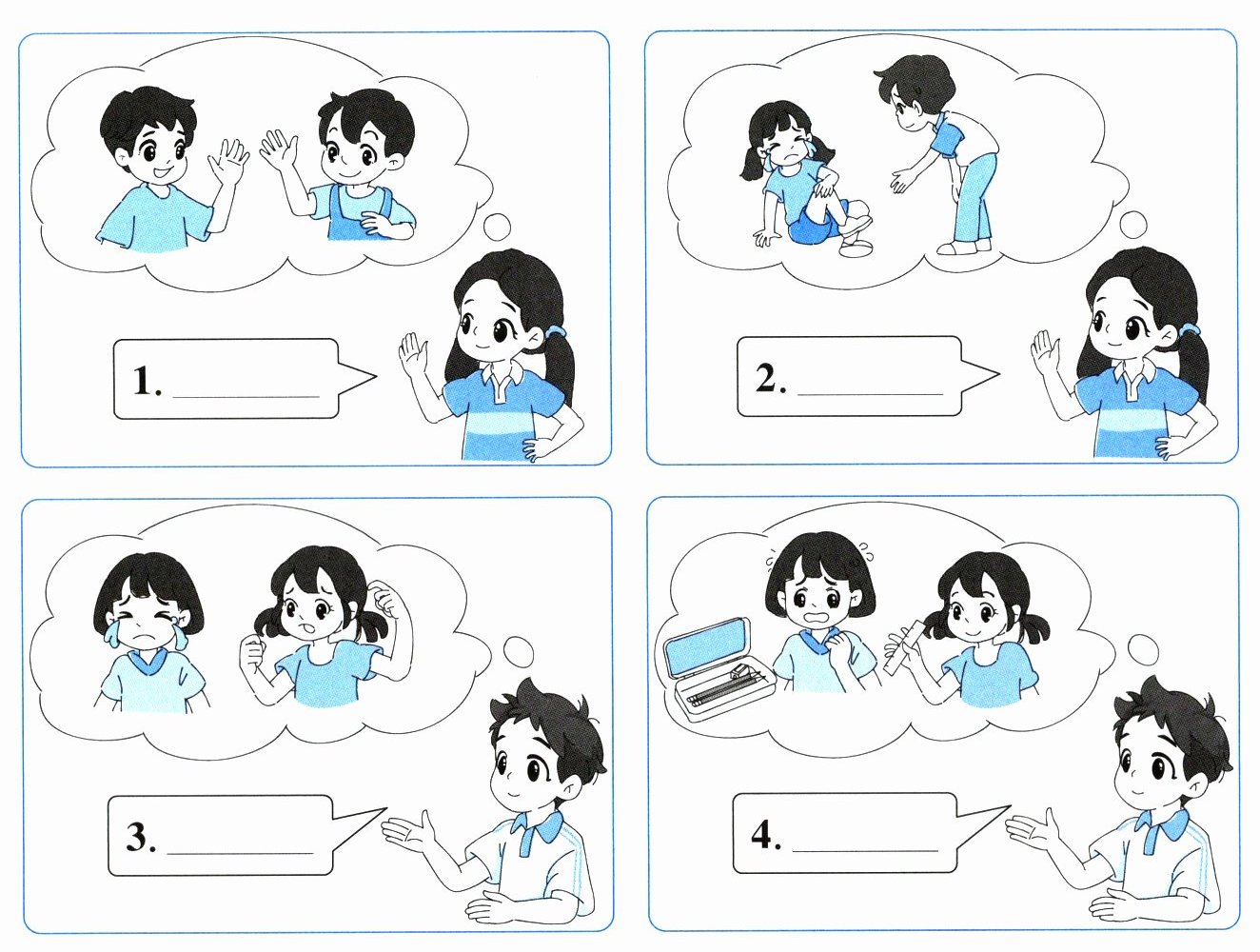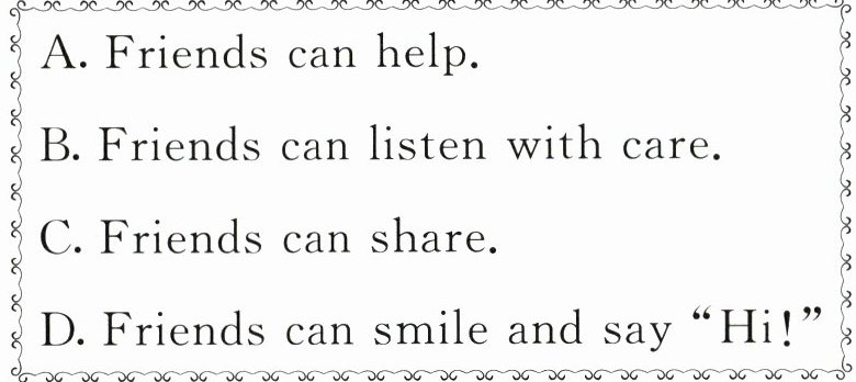 八、好朋友在以下场景中会怎么做呢?读一读,选择与图片对应的句子。(每项限用一次)(8分)