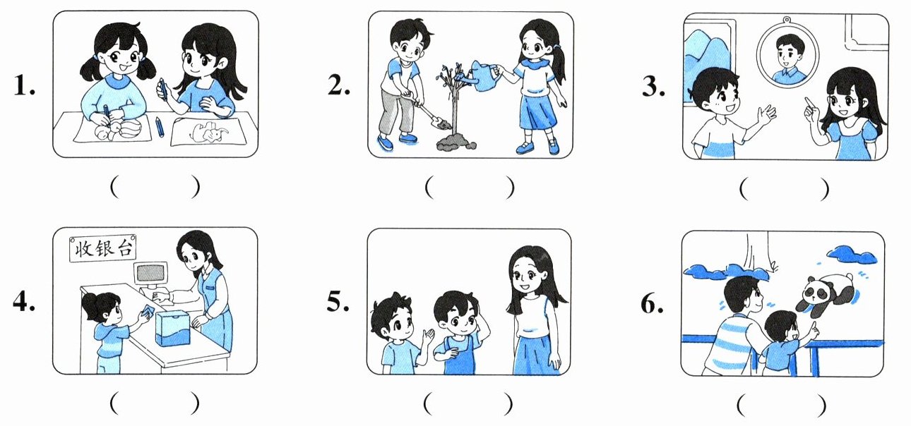 一、判断下列对话与图片是(√)否(×)相符。(8分)