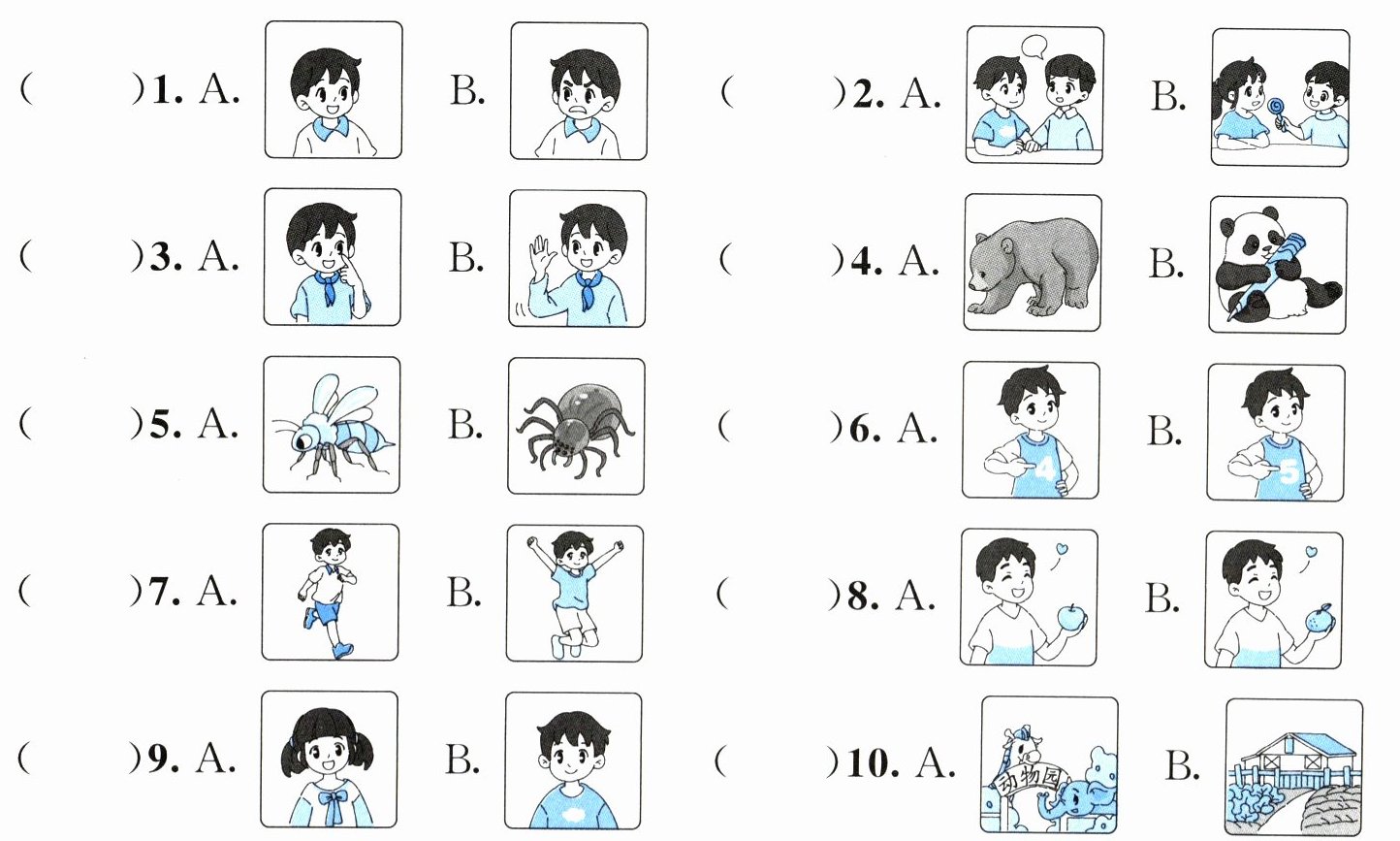 二、听录音,根据所听内容选择相应的图片。(10分)