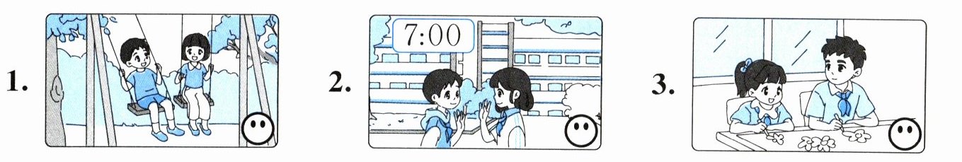 三、听录音,判断描述与图中场景是否一致,一致画“☺”,不一致画“☹”。(6分)