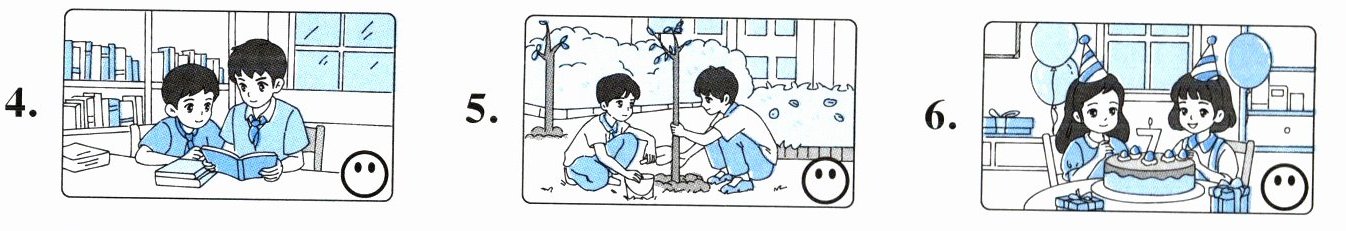 1. 😊 2. 😟 3. 😊 4. 😊 5. 😊 6. 😟