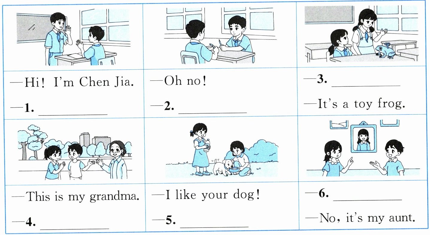 七、根据图片情境,选择句子补全对话,将序号写在横线上。(12分)
