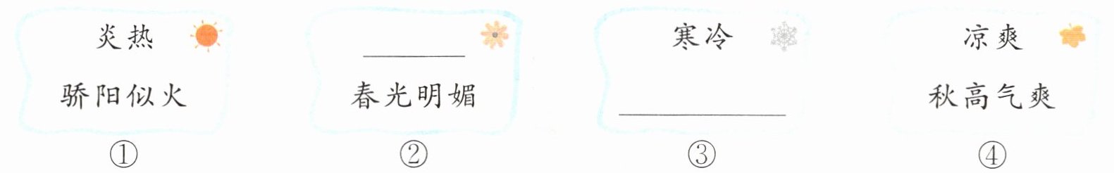 三 下面是状状制作的四张季节词语卡片,请你根据要求完成练习。
