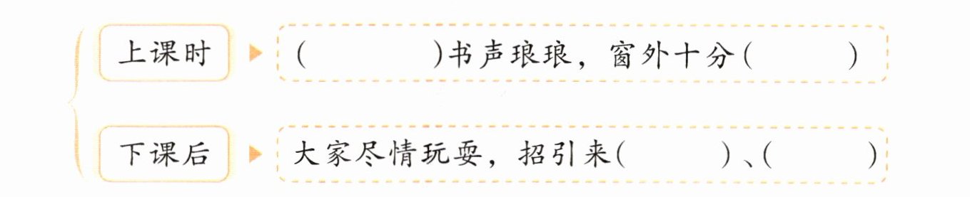 1.摇 叫 停 听 读 2.示例:鸟儿 蝴蝶 猴子 松鼠 人 3.教室里 安静 小鸟 松鼠