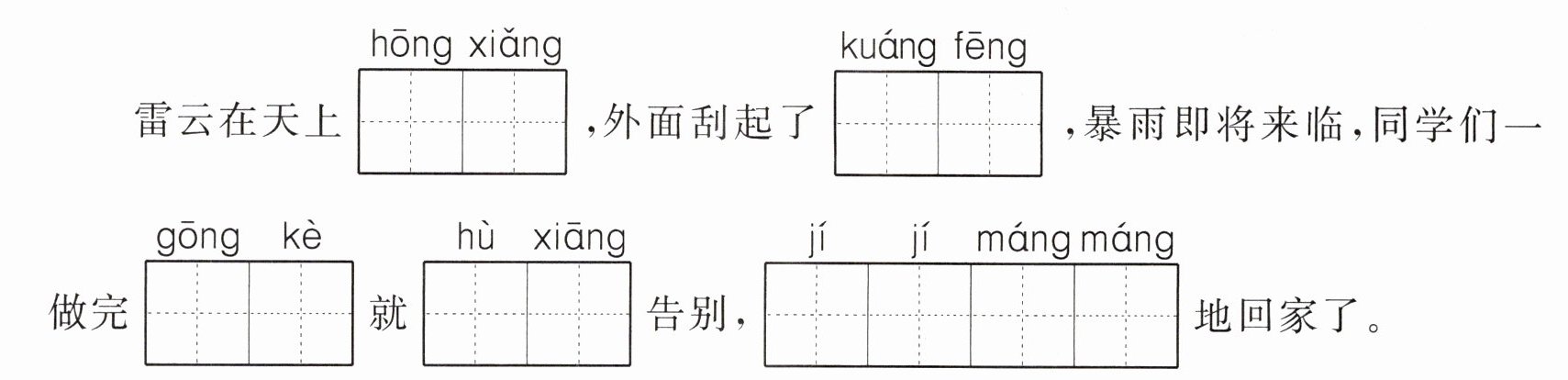 二 下面是元元写在日记里的一段话,请你根据拼音帮她补写完整。
