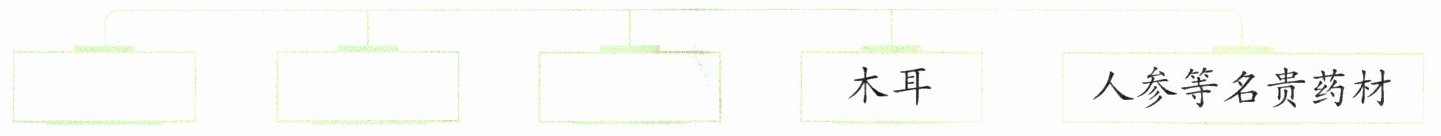 3. 小兴安岭的森林向人们献出了哪些特产?请完成下面的思维导图。