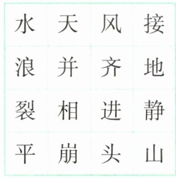 (2)语文要素从格子里选出合适的成语形容下面句子描绘的画面:极远的海面和天空连接在一起,分不清哪是水,哪是天,构成一幅水天一色、天水相融的图画。 (