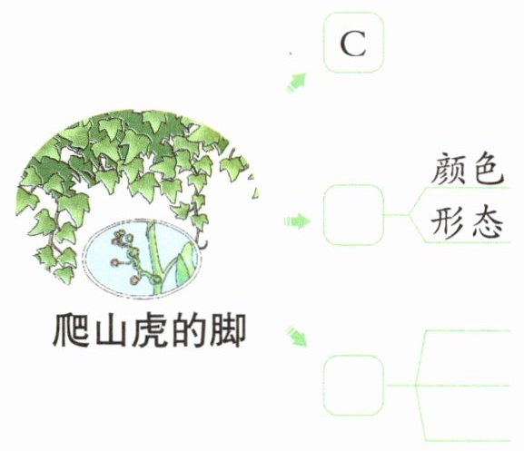 (2)生长变化:茎上长叶柄的地方,反面伸出的细丝很像______的触角;那些细小的脚,会让人想起图画上______的爪子。(填动物名称)