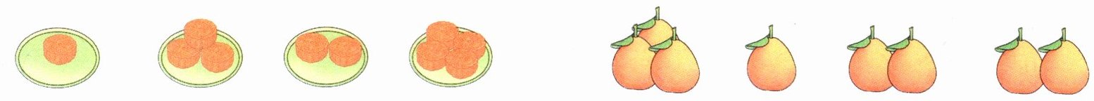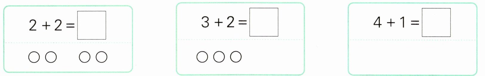 (1)先想几和几合起来是5,再看图中每盘月饼的个数,将个数合起来是5的连起来,再写出相应的算式即可。